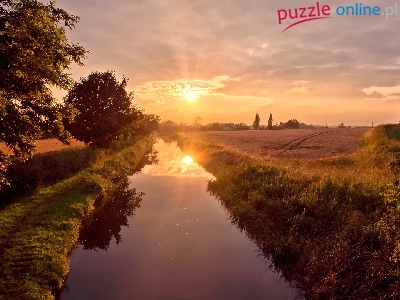 Puzzle Słońca, Rzeczka, Promienie, Poranek