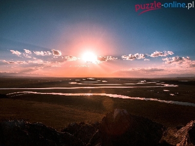 Łąki, Skały, Wschód, Słońca, Rzeka
