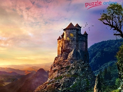 Puzzle Słońca, Góry, Wschód, Zamek