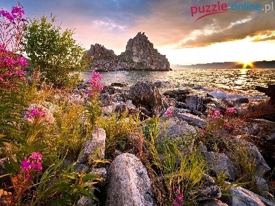 Wschód Słońca, Jezioro, Skała, Kamienie, Bajkał, Rosja