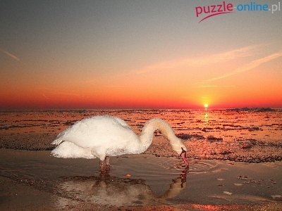 Puzzle Słońca, Łabędź, Zachód, Morze