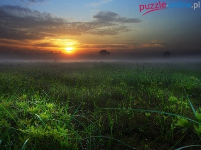 Puzzle Słońca, Łąka, Zachód, Chmury