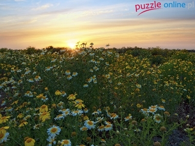 Puzzle Łąka, Zachód, Słońca, Kwiaty