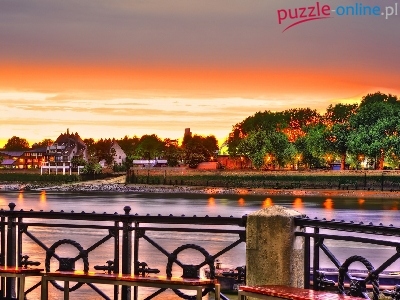 Zachód słońca, HDR, Rzeka, Domy, Balustrada Anglia