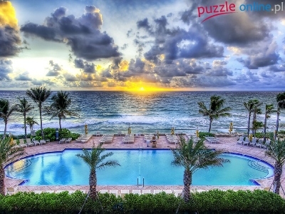 Puzzle Słońca, Basen, Zachód, Palmy