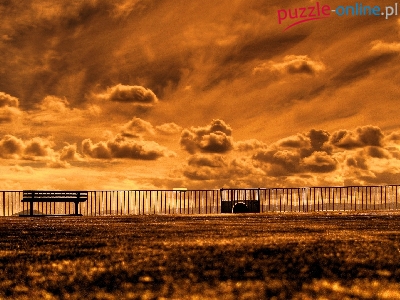Puzzle Słońca, Chmury, Zachód, Ławki