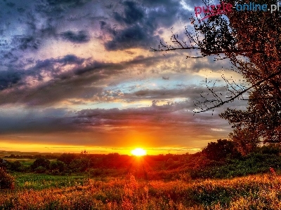 Puzzle Słońca, Chmury, Zachód, Drzewa