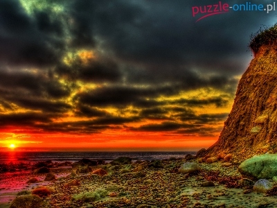 Słońca, Kamienie, Chmury, Zachód, Morze
