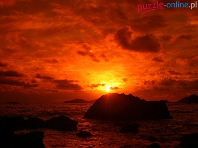 Słońca, Skałki, Czerwony, Zachód, Morze
