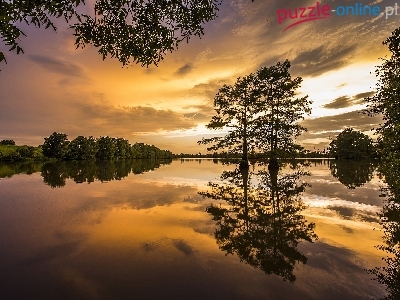 Zachód Słońca, Odbicie, Delta Missisipi, Rzeka, Drzewa