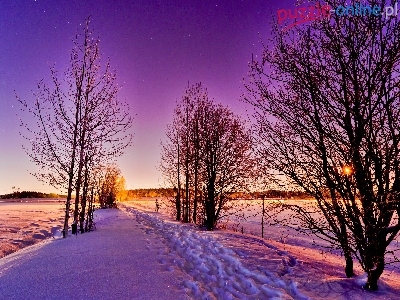 Słońca, Drzewa, Zachód, Zima