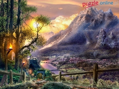 Puzzle Słońca, Góry, Zachód, Fantasy
