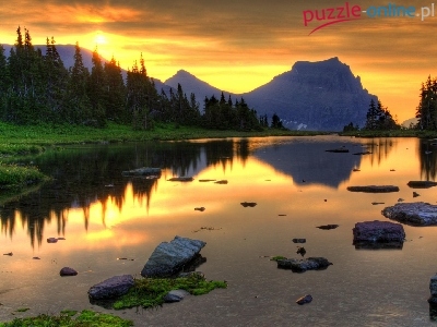 Puzzle Słońca, Góry, Zachód, Jezioro