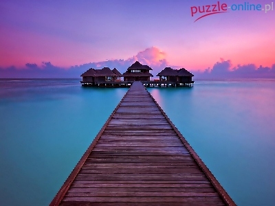 Zachód Słońca, Morze, Tropiki, Malediwy, Molo, Hoteliki
