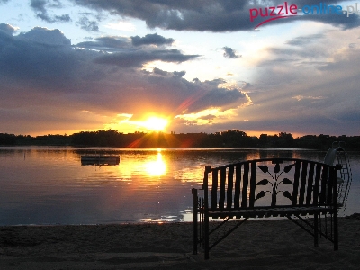 Puzzle Słońca, Jezioro, Zachód, Ławka