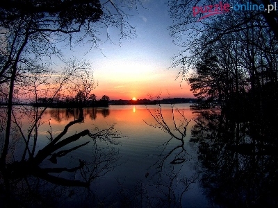 Puzzle Słońca, Jezioro, Zachód, Drzewa