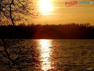 Puzzle Słońca, Jezioro, Zachód, Gałęzie