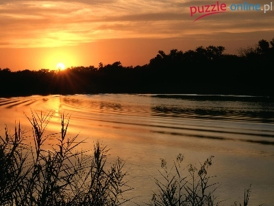 Puzzle Słońca, Jezioro, Zachód, Lasy