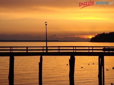 Puzzle Słońca, Jezioro, Zachód, Pomost
