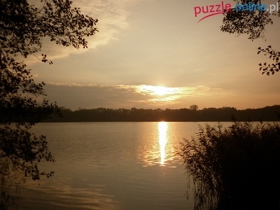 Puzzle Słońca, Jezioro, Zachód, Szuwary