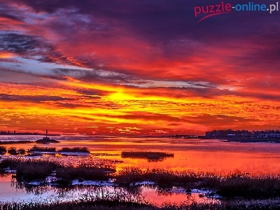 Puzzle Słońca, Jezioro, Zachód, Trawy