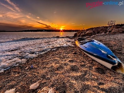 Słońca, Plaża, Kajak, Morze, Zachód, Połamany