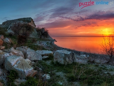 Puzzle Słońca, Kamienie, Zachód, Jezioro