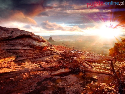 Puzzle Słońca, Kanion, Zachód, Chmury