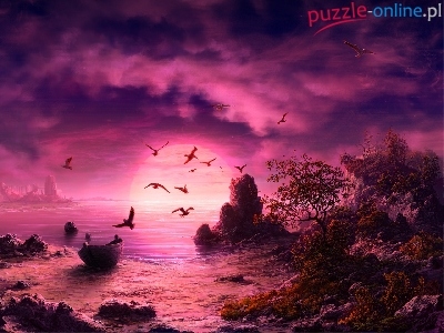 Puzzle Słońca, Krajobraz, Zachód, Morze
