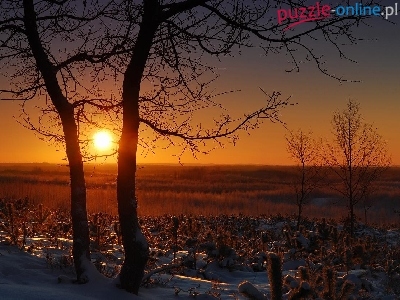 Puzzle Słońca, Krajobraz, Zachód, Śnieg