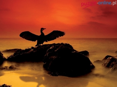 Słońca, Kamienie, Mgła, Kormoran, Zachód, Ocean