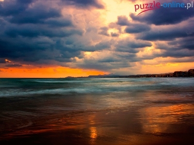 Puzzle Słońca, Morze, Zachód, Chmury