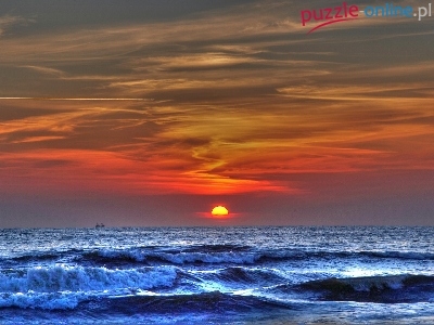 Puzzle Słońca, Morze, Zachód, Fale