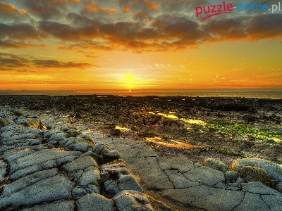 Puzzle Słońca, Morze, Zachód, Kamienie