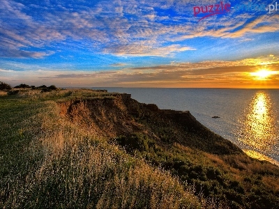 Słońca, Klif, Morze, Zachód, Brzeg