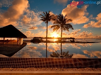 Puzzle Słońca, Morze, Zachód, Palmy