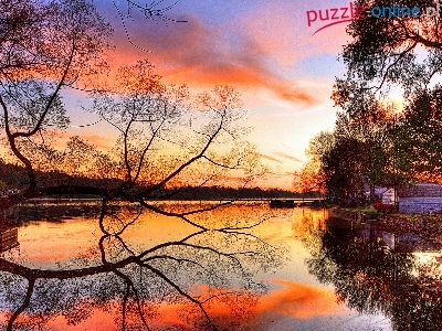 Puzzle Słońca, Niebo, Zachód, Jezioro