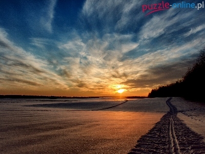 Puzzle Śnieg, Zachód, Słońca, Zima
