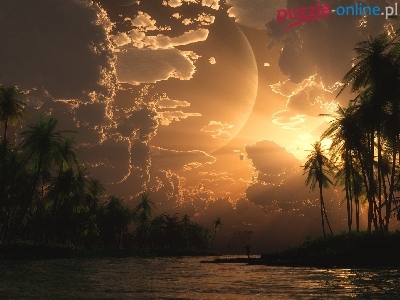 Puzzle Słońca, Rzeka, Zachód, Palmy