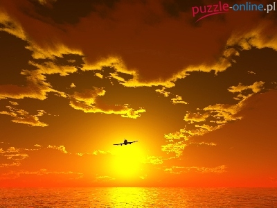 Puzzle Słońca, Samolot, Zachód, Morze