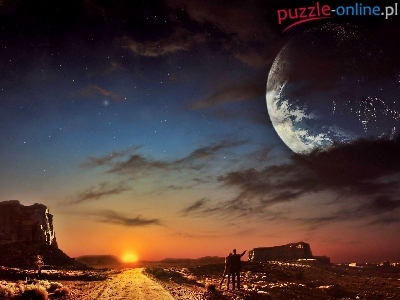 Słońca, Droga, Skały, Fantasy, Zachód, Planeta