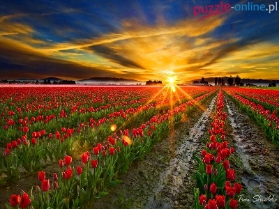 Słońca, Słoneczne, Tulipany, Zachód, Promienie