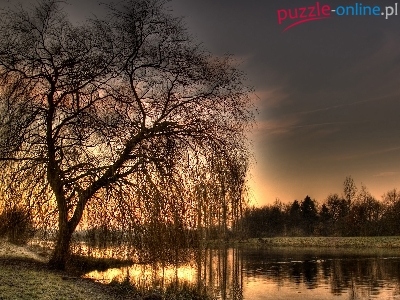 Puzzle Słońca, Wieczór, Zachód, Rzeka
