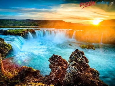 Puzzle Słońca, Wodospad, Zachód, Skały