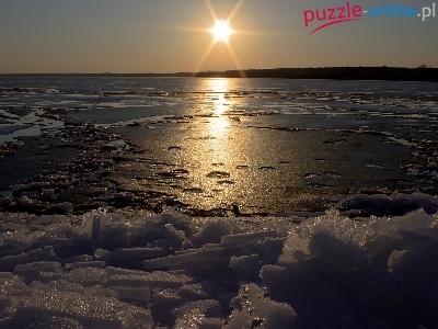 Puzzle Słońca, Zima, Zachód, Jezioro