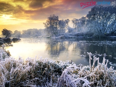 Puzzle Słońca, Zima, Zachód, Jezioro