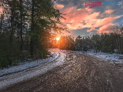 Słońca, Las, Zima, Zachód, Droga