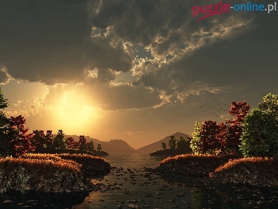 Słońca, Rzeki, Drzewa, Góry, Zachody, Kolorowe