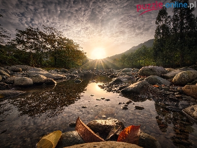 Puzzle Drzewa, Rzeka, Kamienie, Słońce