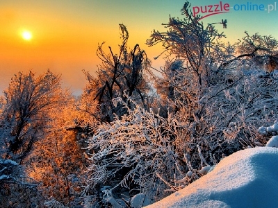Puzzle Słońce, Krzewy, Drzewa, Zima